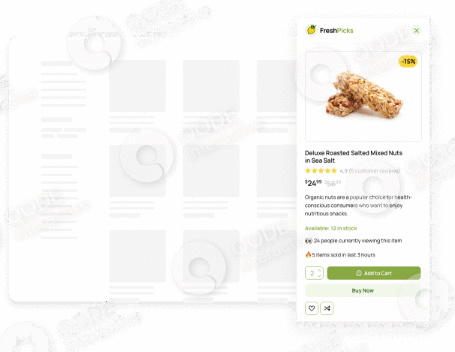 Boost your sales by inputting a faux number of visitors currently viewing a product, as well as the number of purchases.